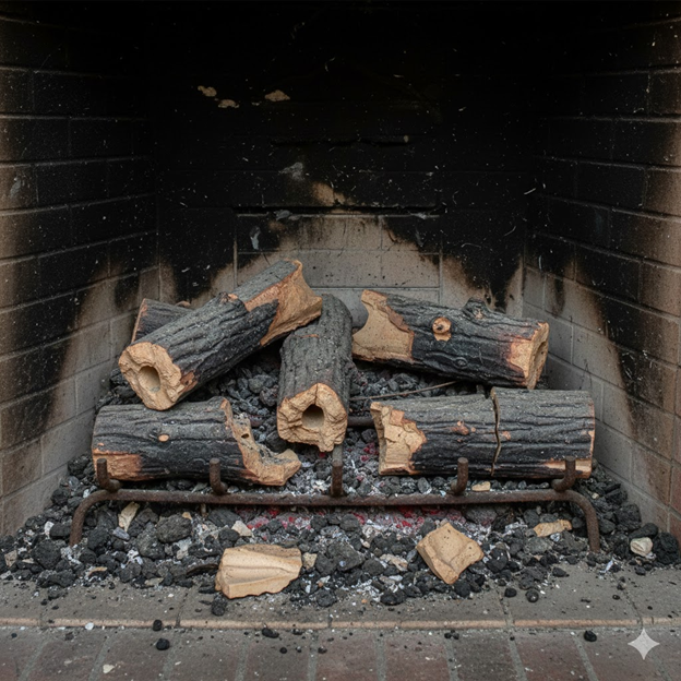 - Logs that no longer sit correctly on the burner
